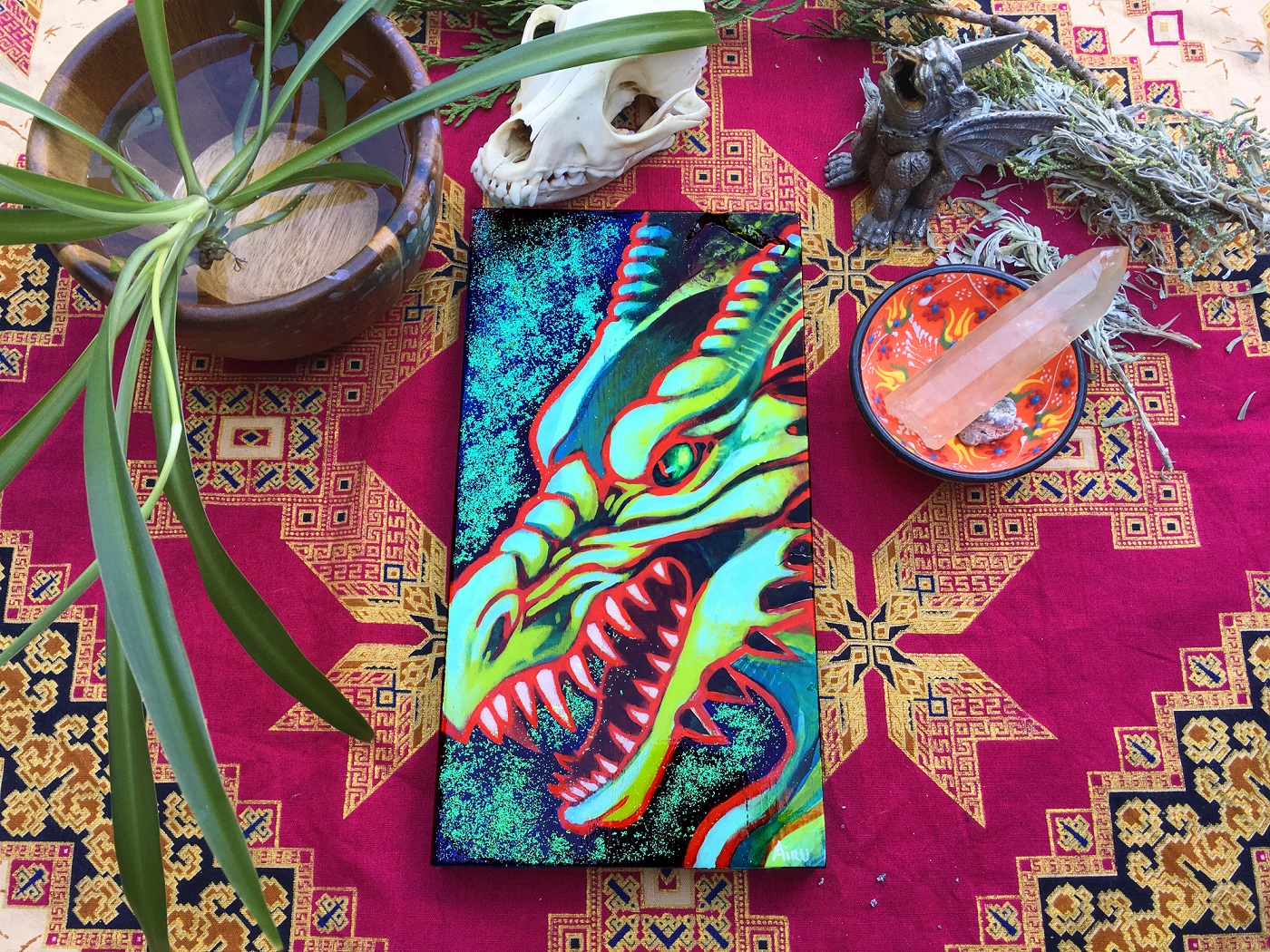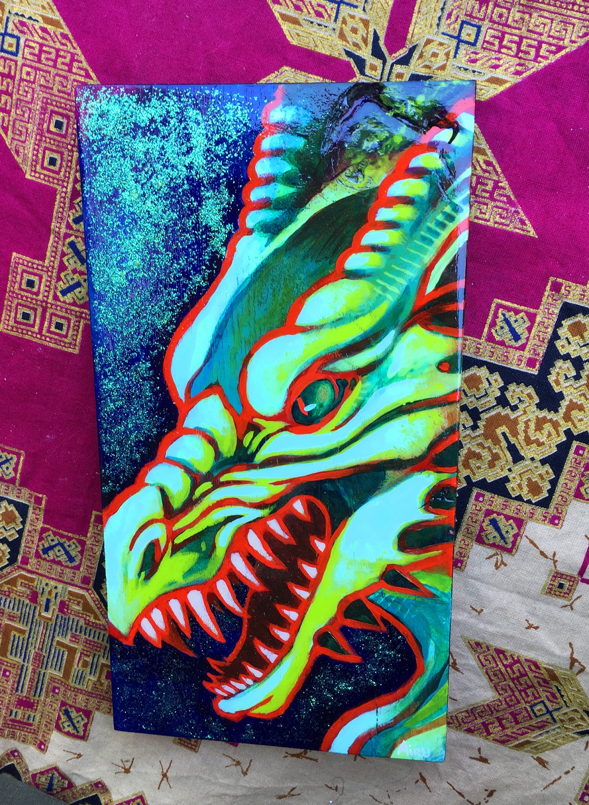 Mixed media (acrylic, glitter, pencil) on wood - 5" x 9.5"