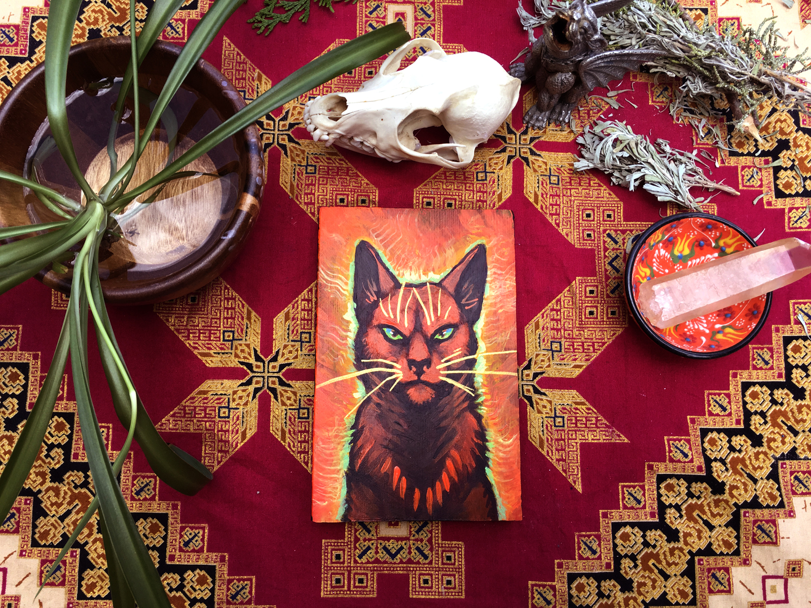 Mixed media (acrylic, slightly UV reactive) on wood - 4.5" x 7"