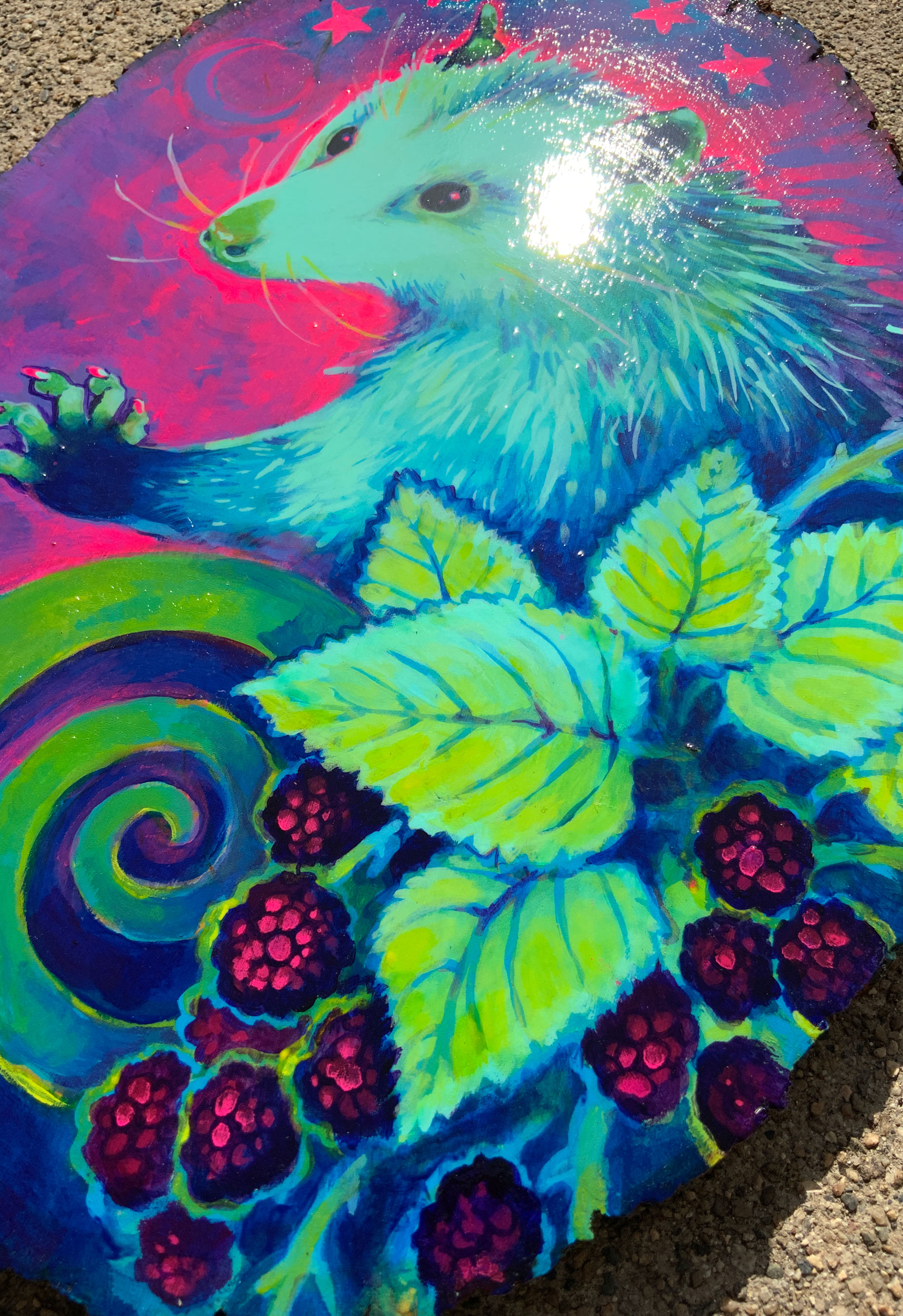 Acrylic paint on wood round - appx 8 3/4" x 13"
