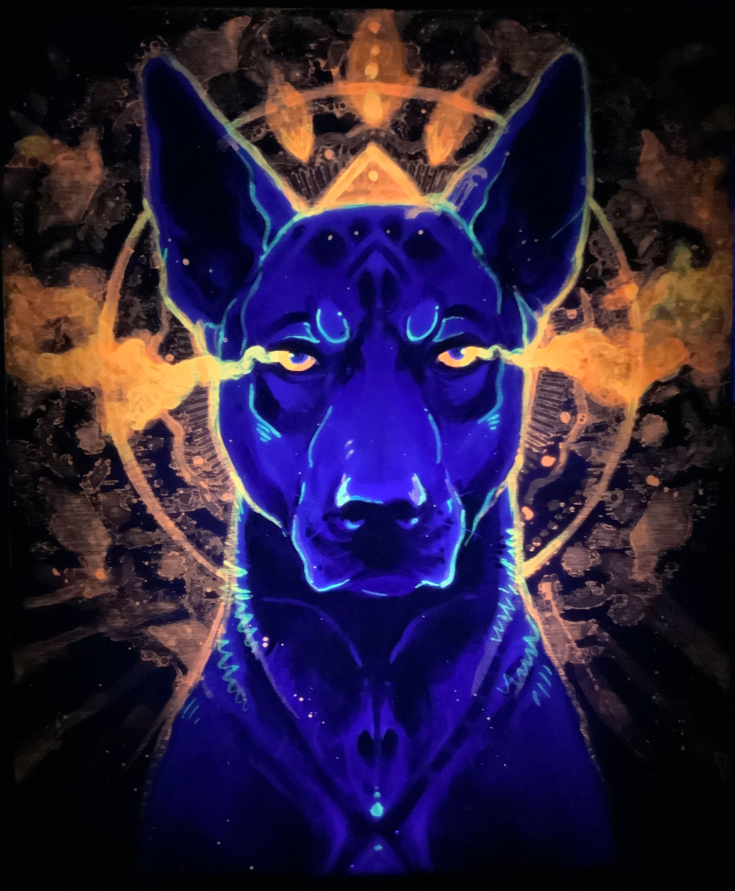 Acrylic paint on wood - 10.5" x 13" ... UV reactive.