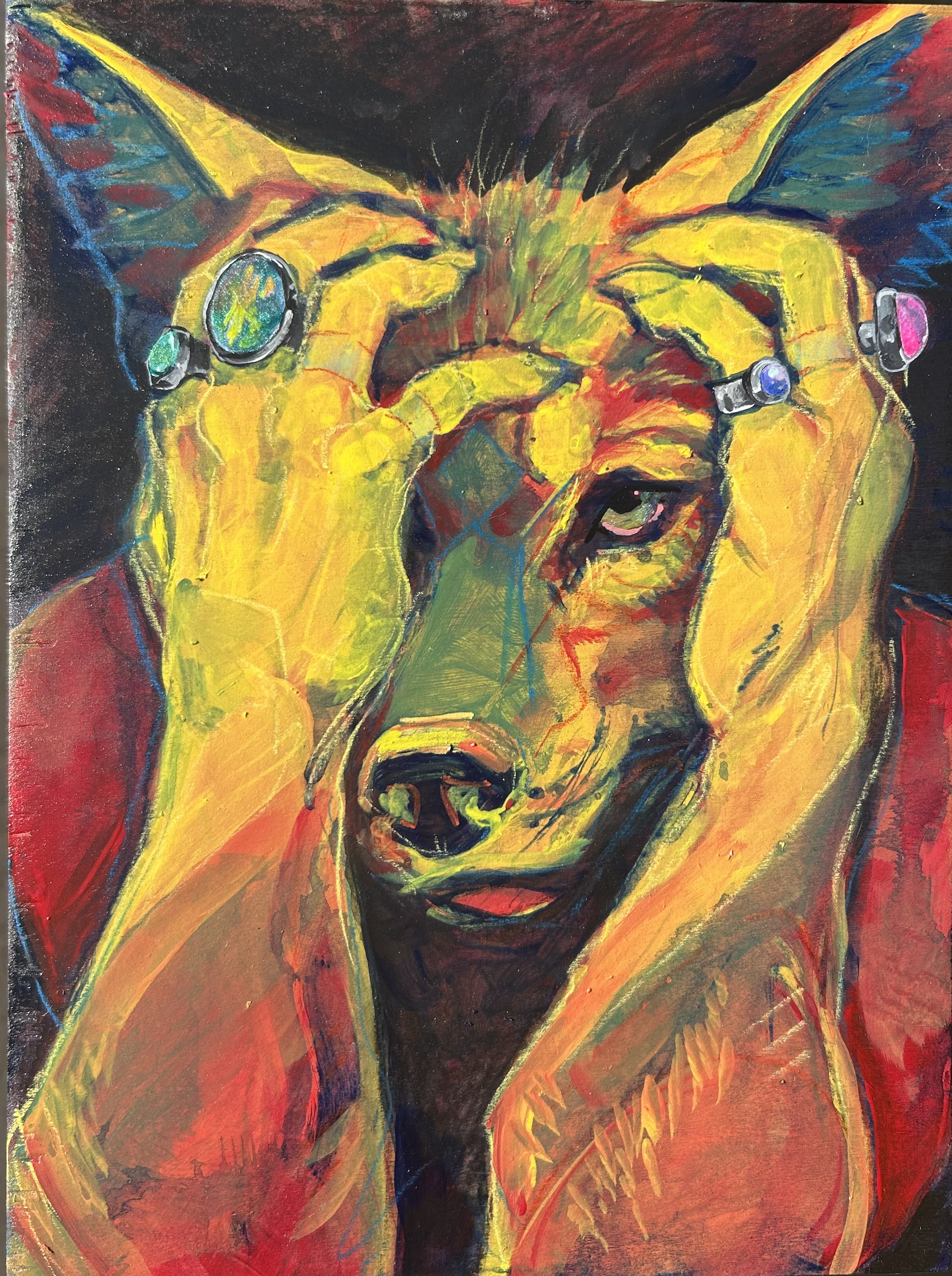 Hanger ready, no framing necessary 7.7’’ x 10.5’’ Mixed media on wood
