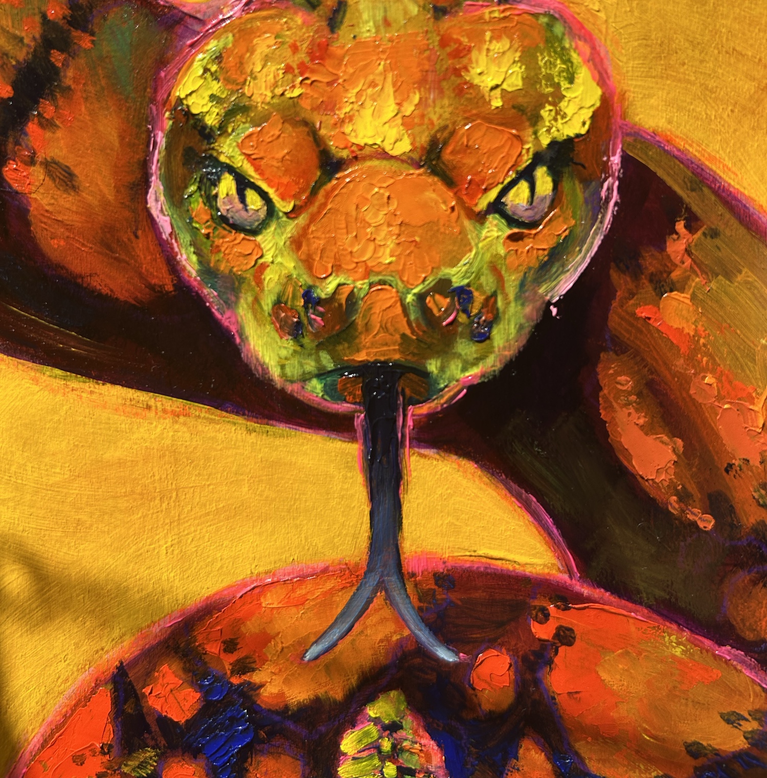 Ready to hang, no framing necessary 5.5’’ x 15.5’’ oil on wood… UV paint outline